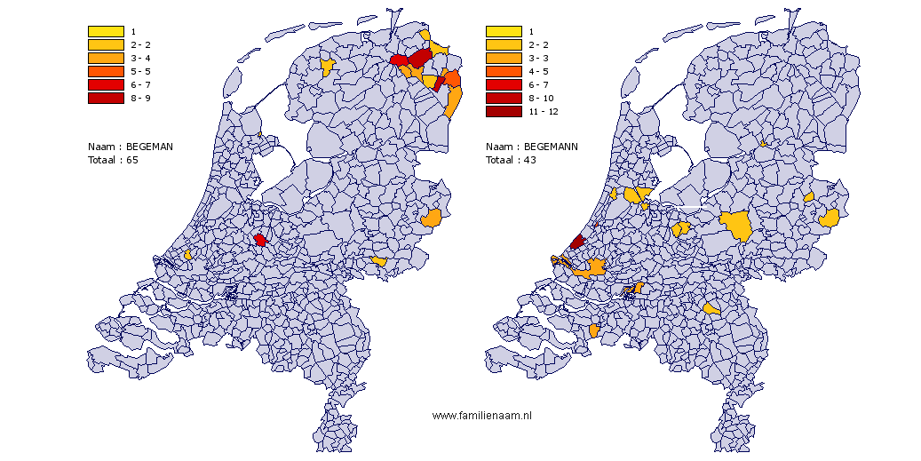 Zahlen aus: Begemann 122 / Begeman 210 Personen. Im Norden der Niederlande¹ überwiegt